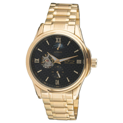 An automatic or self-winding watch is a mechanical watch in which the mainspring is wound automatically as a result of the natural motion of the wearer to provide energy to run the watch, making manual winding  or changing of a battery unnecessary. Perfect for people who travel frequently or who do not wear their watch every day. Check out our extensive range of automatic watches in a wide range of styles including gold, steel and rose gold finishes. In a mechanical watch the watch's gears are turned by a spiral spring called a mainspring. In a manual watch energy is stored in the mainspring by turning a knob, the crown on the side of the watch, winding the mainspring. Then the energy from the mainspring powers the watch movement until it runs down, requiring the spring to be wound again. Self-winding mechanisms continue working even after the mainspring is fully wound up.