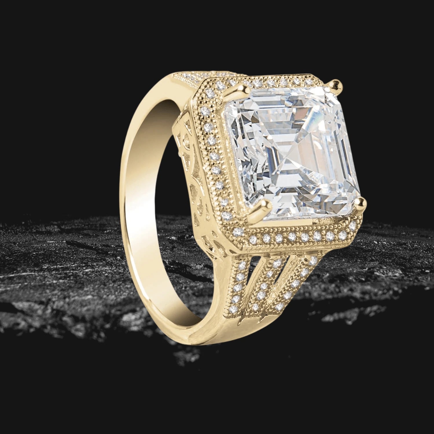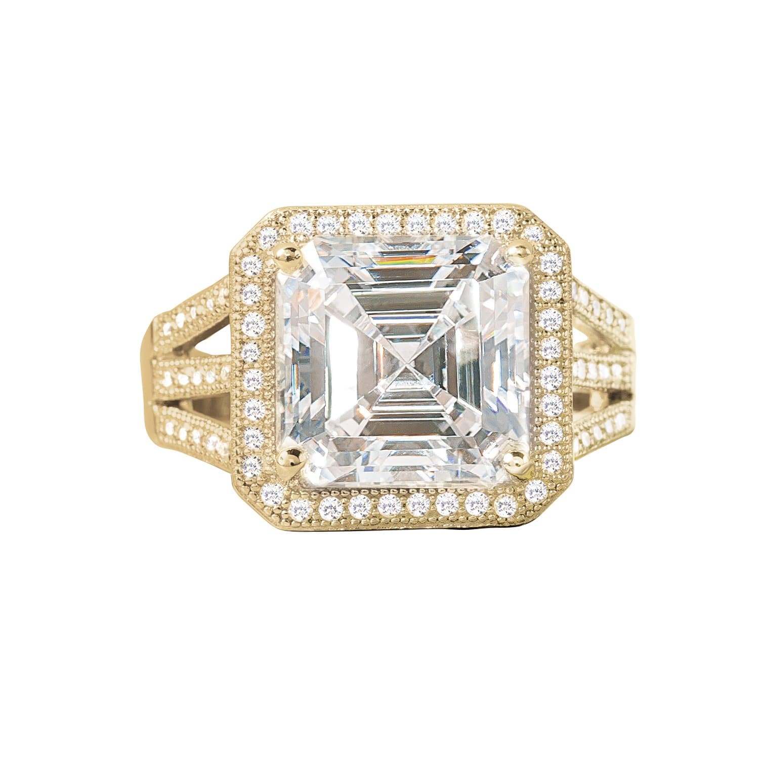 We could all do with a little bit of glamour as the days draw in. Our new Solace ring fits that bill. It will shimmer and sparkle with an eternal fire that will not fade. The star of the show is 5.62ct of classic Diamondeau® - flawless simulated diamond in a stunning princess cut. Surrounded by 65 glistening Diamondeau® - flawless simulated diamond to enhance the brilliance. These stunning gems are set in mounts of the finest solid sterling silver finished in 18k yellow gold. Go on; treat yourself.
