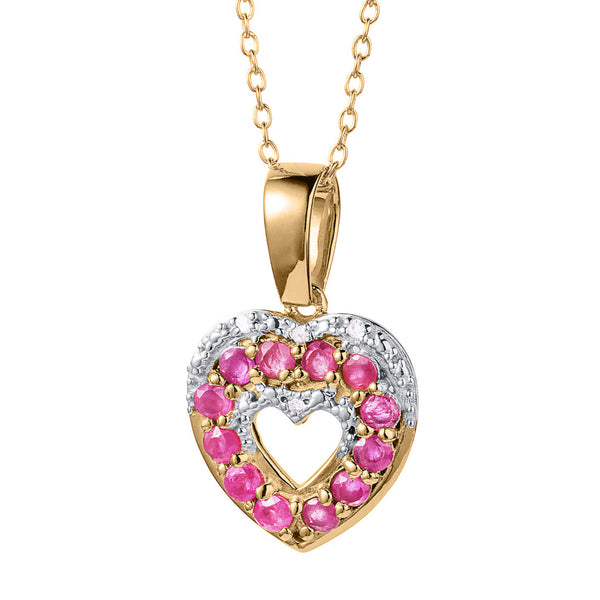 A statement symbol and gift of love in the form of Rubies and Diamonds. This set is sure to show much she means to you. Expertly crafted from sterling silver, finished in 18k yellow gold. The beautiful heart shaped frame has 12 stunning rubies handset into the mount, framed with shimmering diamonds. Celebrate Valentine’s Day this year with this enchanting collection.