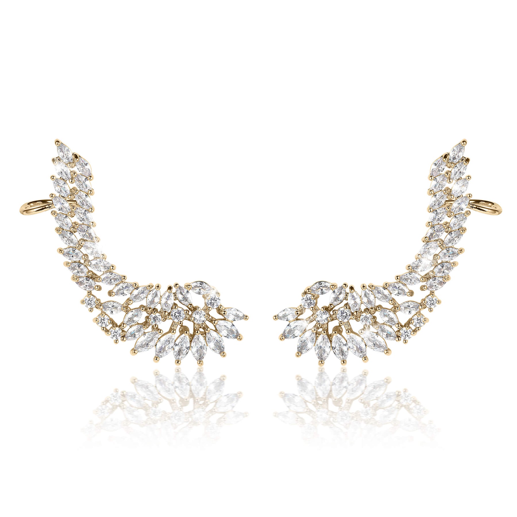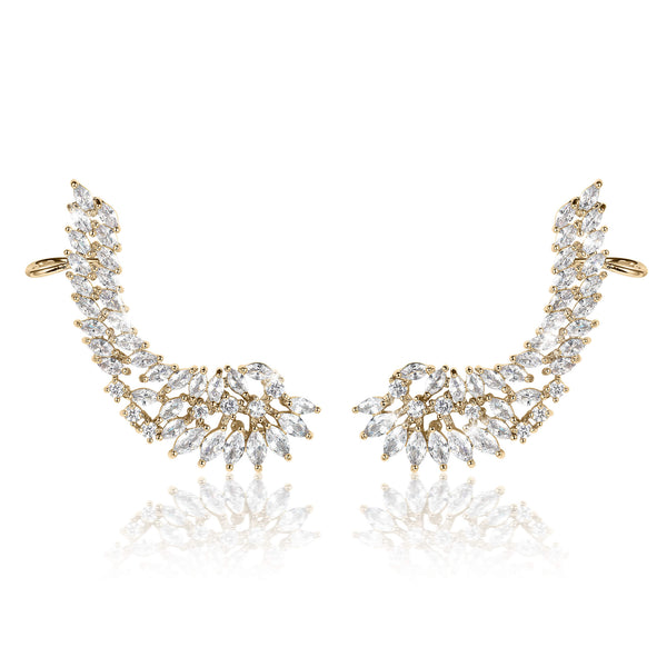 Elevate your style and adorn your ears with these captivating earrings, designed to effortlessly climb up the curve of your earlobe, creating a look that’s both elegant and alluring. Finely crafted from sterling silver, finished in yellow gold. Each curve is meticulously set with dazzling Diamondeau®, flawless simulated diamond, that shimmer and dance with every movement. This unique design ensures they stay securely in place, making them perfect for a special occasion or simply to add a touch of glamour to your everyday.