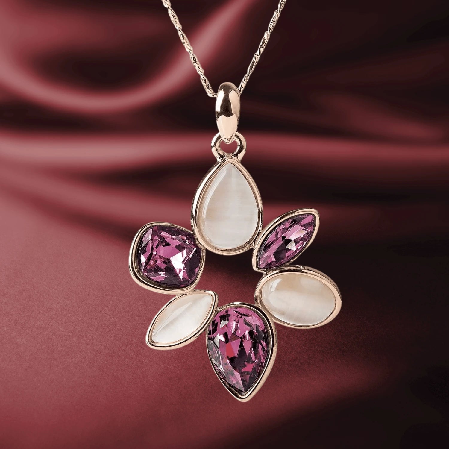 You will be sure to be completely captivated by this stunning masterpiece. The mixture of pear-shape, princess cuts, marquise and oval cuts add a vibrant intrigue. Available in luxurious rose or yellow gold plated finishes.