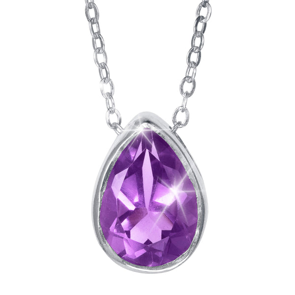 A captivating ladies pendant, featuring an exquisite pear drop design adorned with a stunning natural gemstone. Amethyst known for its royal purple hue, exudes sophistication and tranquility. Each pendant is finely crafted from sterling silver and can be worn individually to make a bold statement or layered for a dynamic look.