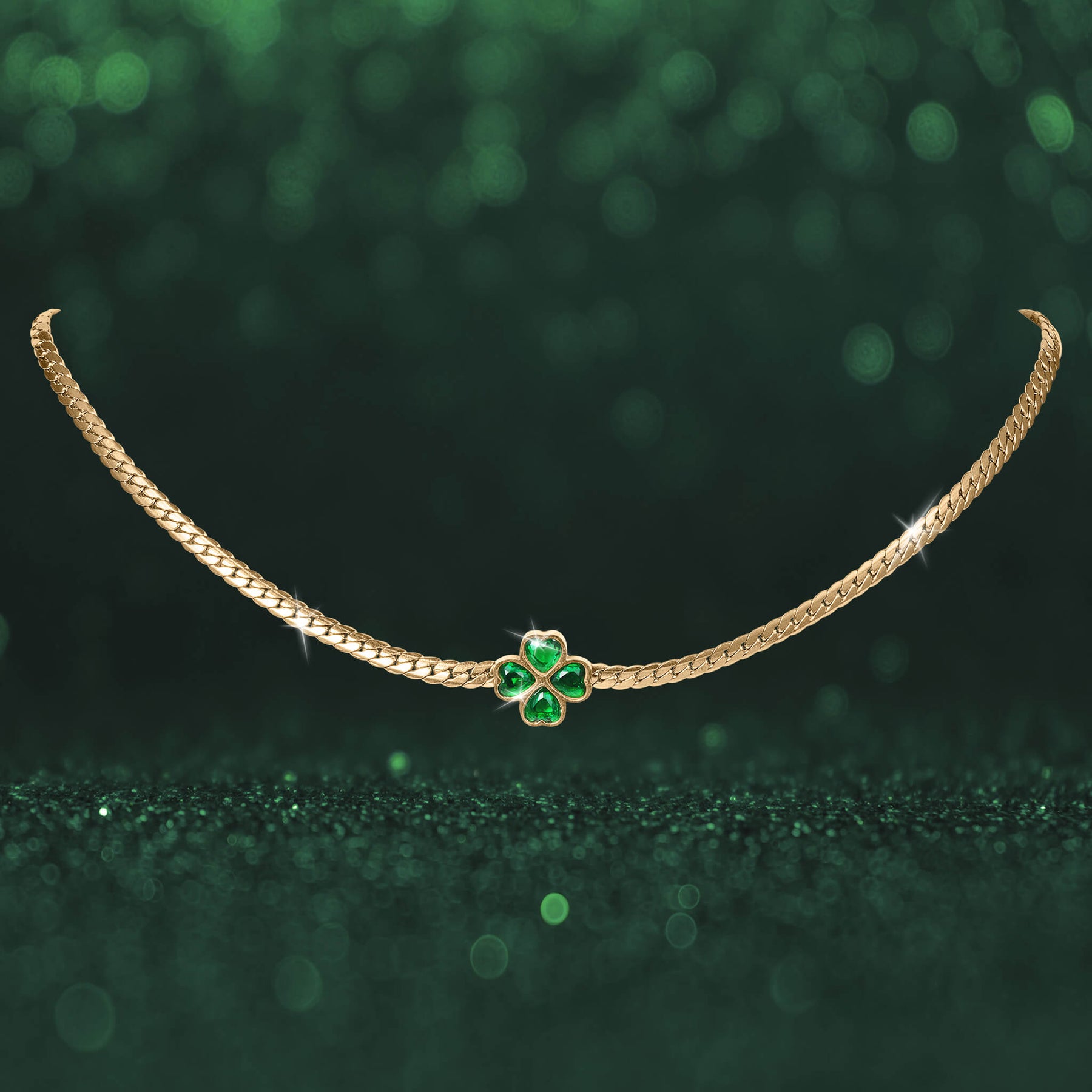 Step into the spirit of St. Patrick’s Day with a stunning curb necklace and drop earring set designed to infuse your look with style and charm. Finished in lustrous yellow gold, each piece is adorned with a four-leaf clover charm crafted from shimmering green Diamondeau® flawless simulated diamond stones - a symbol of luck and beauty. Together, the set brings a refined touch of Irish inspired glamor to any outfit, from festive celebrations to everyday chic. Make every day a lucky one, the perfect gift for yourself or a loved one.