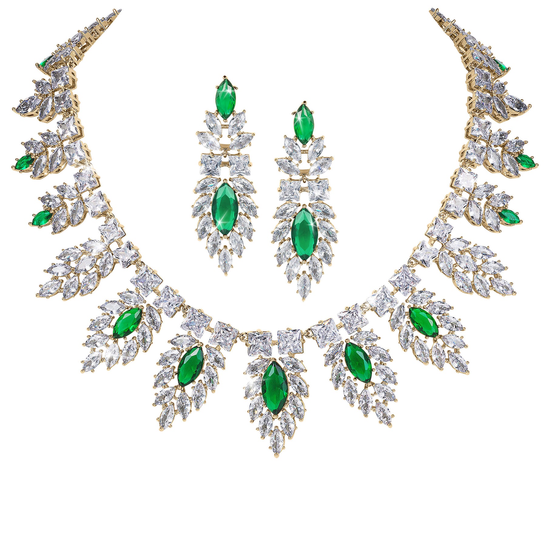 This collection is not for the faint of heart. This is for the woman who dares to stand out, who commands attention, and who knows the power of making a statement. A chunky necklace that rests gracefully against your neckline and earrings that frame your face with brilliance. The yellow gold finish adds an air of luxury and perfectly complements the precision set striking green and clear Diamondeau®, flawless simulated diamond. Add an element of drama and allure to your outfit.