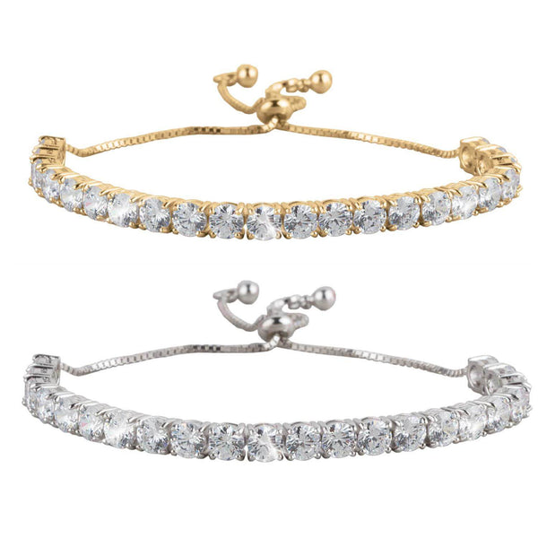 Adjustable bracelets have become an on trend jewelry item, not just for their gorgeous look, but they are so easy to put on. If you have trouble doing a bracelet up yourself this is perfect for you. Just pull one side and the bracelet easily fits around your wrist. Not only is this an awesome advantage to this magnificent bracelet, it is also set with 20 sparkly white Diamondeau® - flawless simulated diamond. We love this bracelet so much we have brought it to you in 3 colors. Choose from silver, yellow gold or rose gold. Why not get all three to create a fab layered look?