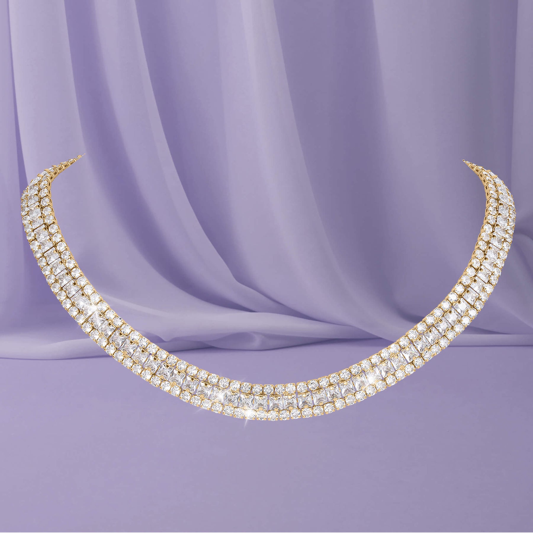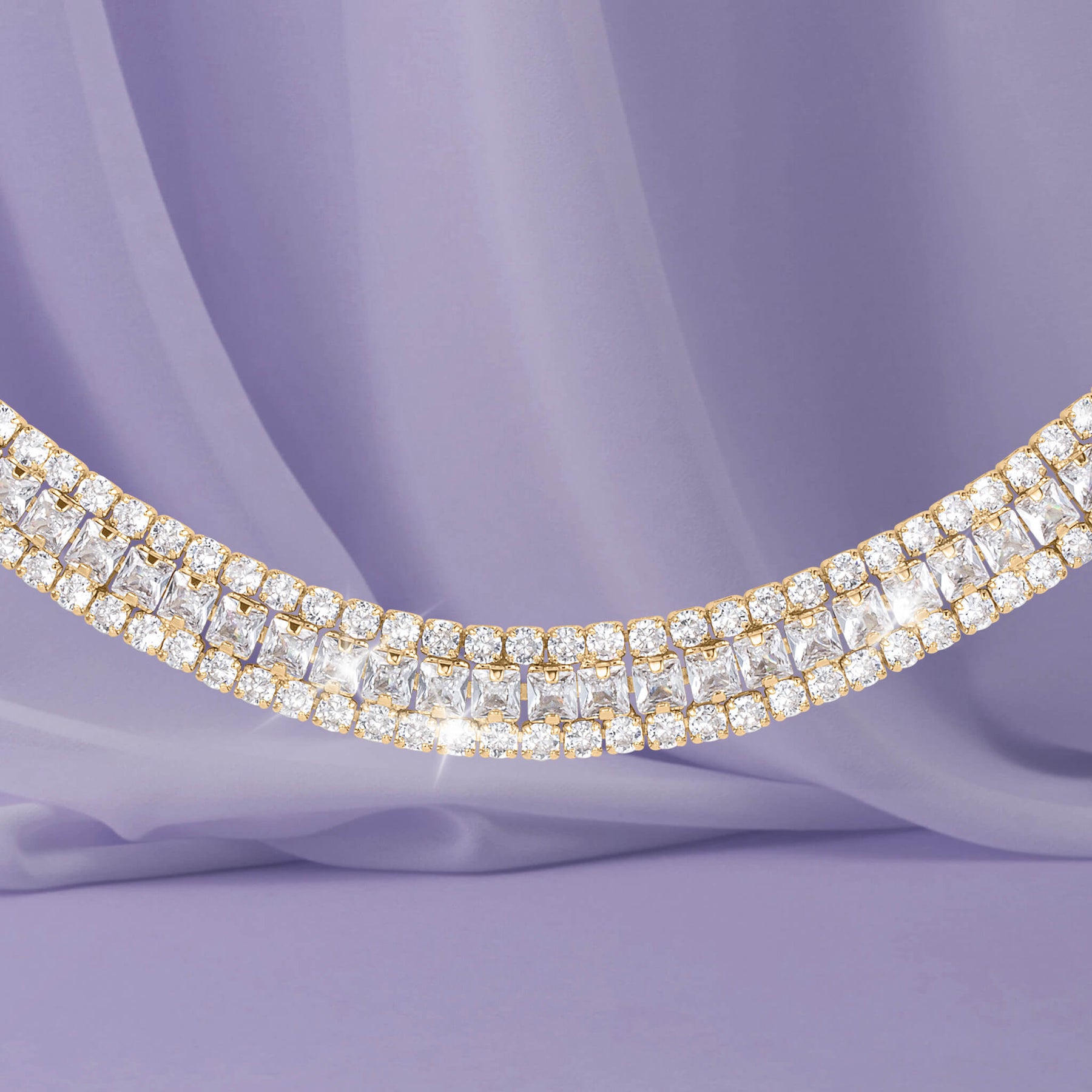 Elevate your look with this timeless 3-piece jewelry set, beautifully crafted in rich yellow gold finish with sparkling Diamondeau®, flawless simulated diamond that capture light from every angle. Featuring a graceful tennis style necklace, matching drop earrings and a coordinating bracelet. This set delivers classic elegance with a modern, radiant bril liance. Designed for versatility, it transitions effortlessly from weddings and festive occasions to evening wear and formal events. A must have set that adds refined sparkle and luxury to any outfit.