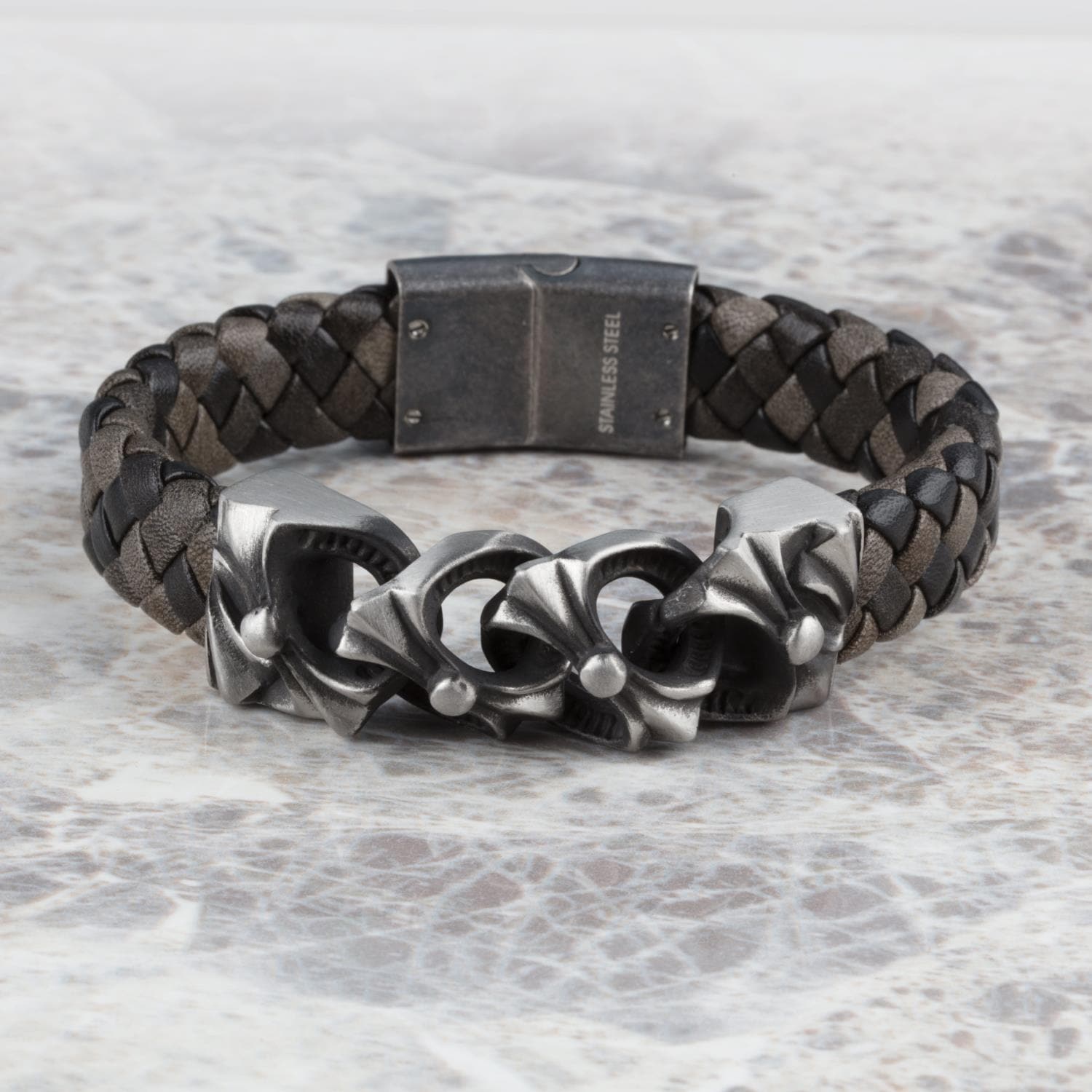 Perfect for everyday wear, this stylish men's leather bracelet is sure to become a favorite accessory. Expertly crafted, this bracelet features 2 tone braided genuine leather strap with premium stainless steel fastening and features. Available in a choice of classic finishes.Using the finest materials finished to the highest standards, Timepieces International has developed a vast range of watches and accessories that provide a purposeful, visual statement. These beautiful products are available at astonishingly low prices, often costing less than a quarter of the recommended price. You may ask how we can offer such quality at such low prices? The answer is beautifully simple: we cut out the middleman. This means there are no retail overheads to pay and not the usual mark up to make which can be enormous on luxury watches and jewelry.