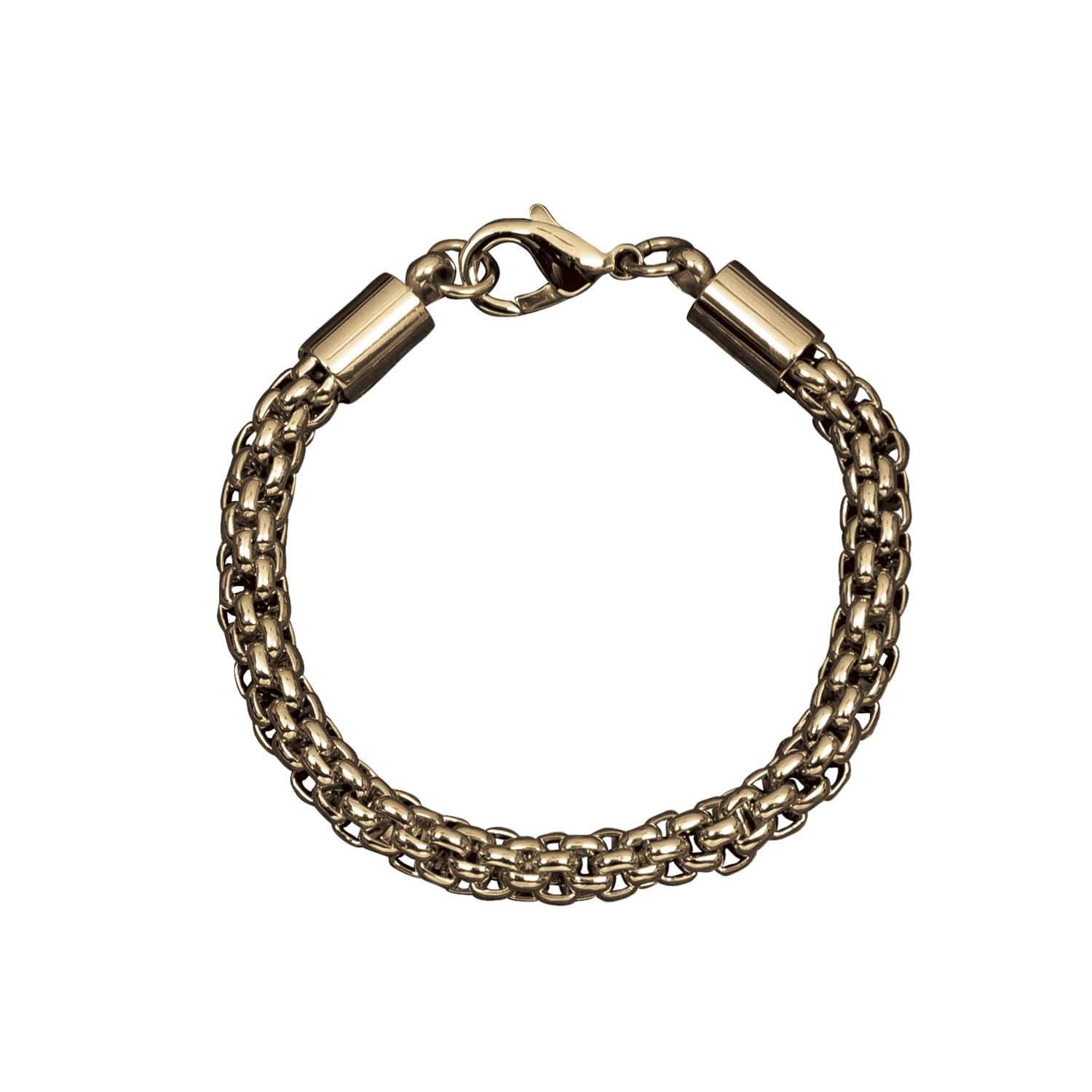 Give him a handsome and masculine look. Fashioned in premium stainless steel and generously plated in warm 18k yellow gold. The intricate links are interwoven making this solid effect necklace and matching bracelet. Guaranteed to be a jewelry staple for everyday wear.