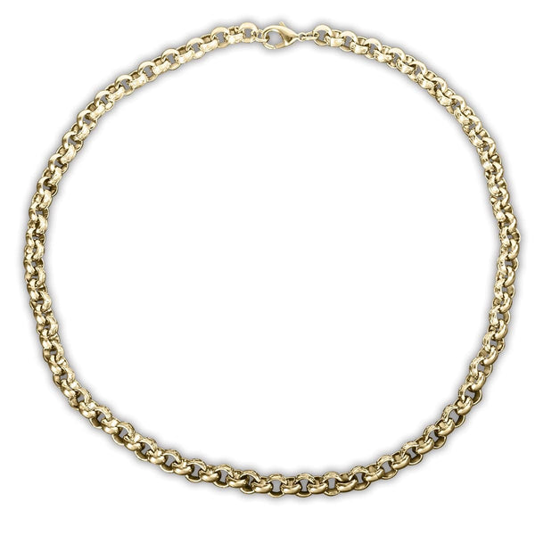 We bring you a classic round belcher chain which should be part of every mans accessory cache. Belcher chain has a great heritage with it originating in Britain in the 18th century. Named for the bare knuckle boxer Jem Belcher who was Champion of All England from 1800 to 1805. Each link is individually formed from premium stainless steel, and alternating links in this version have an added twist in the form of a designer pattern. All finished in 18k yellow gold.