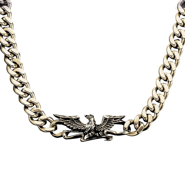 With its wings spread wide in an open salute, our Patriot Eagle Necklace is perfect for anyone that is proud to be an American. Honed from premium grade solid Stainless Steel, each piece will last a lifetime. All items feature a designer antique effect and areĀ fused with 18K Yellow Gold. Necklace measures 22 Inch.