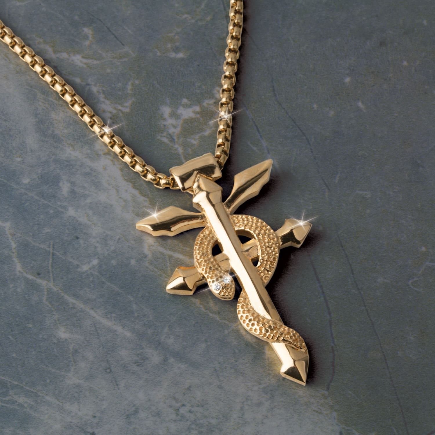 Everyone that has seen this pendant at previews has fallen in love with it - so here it is for you to enjoy. Crafted from the finest solid stainless steel, before being lavishly plated with luxurious 18k yellow gold. A textured snake that slivers around the cross pendant, staring back at onlookers with its Diamondeau® - flawless simulated diamond eyes. A beautiful, flowing pendant.