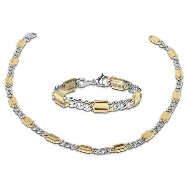The moment you receive your new item you will not be disappointed. You will appreciate the quality, the weight and feel of each piece. We have used premium stainless steel and enhanced the solid, polished links with 18k yellow gold finish for a two-tone effect. Available in your choice of chain or matching bracelet or both to make a great saving. A real showstopper.