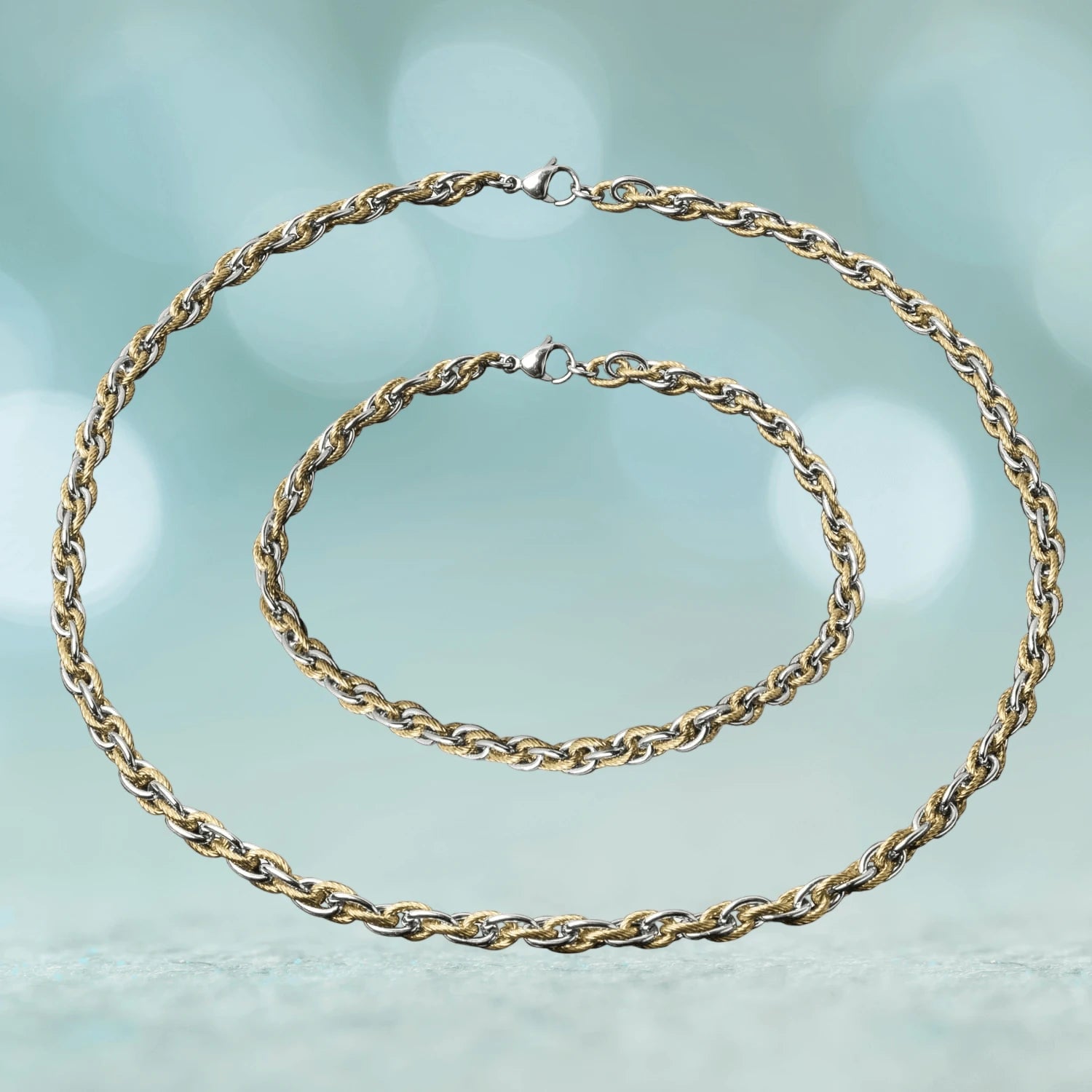 This collection is elegantly crafted in premium quality stainless steel. A classic Prince of Wales chain, formed from highly polished links and yellow gold textured links for a warm and classic tone. Adaptable enough to be worn every day or just for a special occasions. Every piece is complete with our signature presentation boxes, keeping your jewelry sparkling and ready to wear.