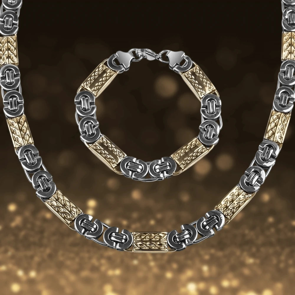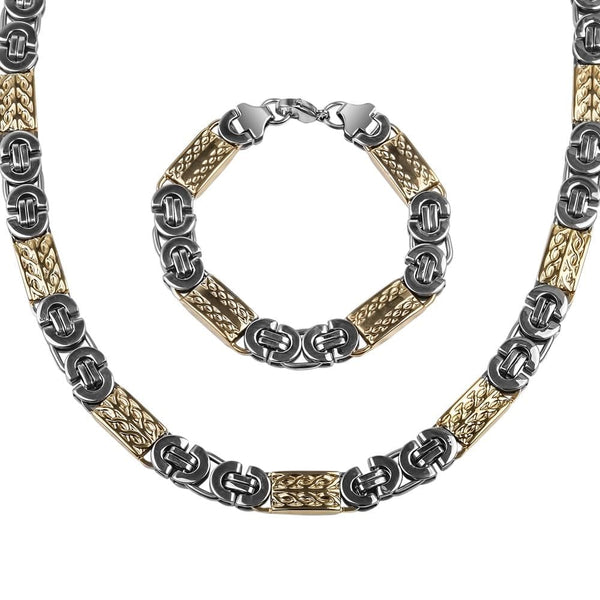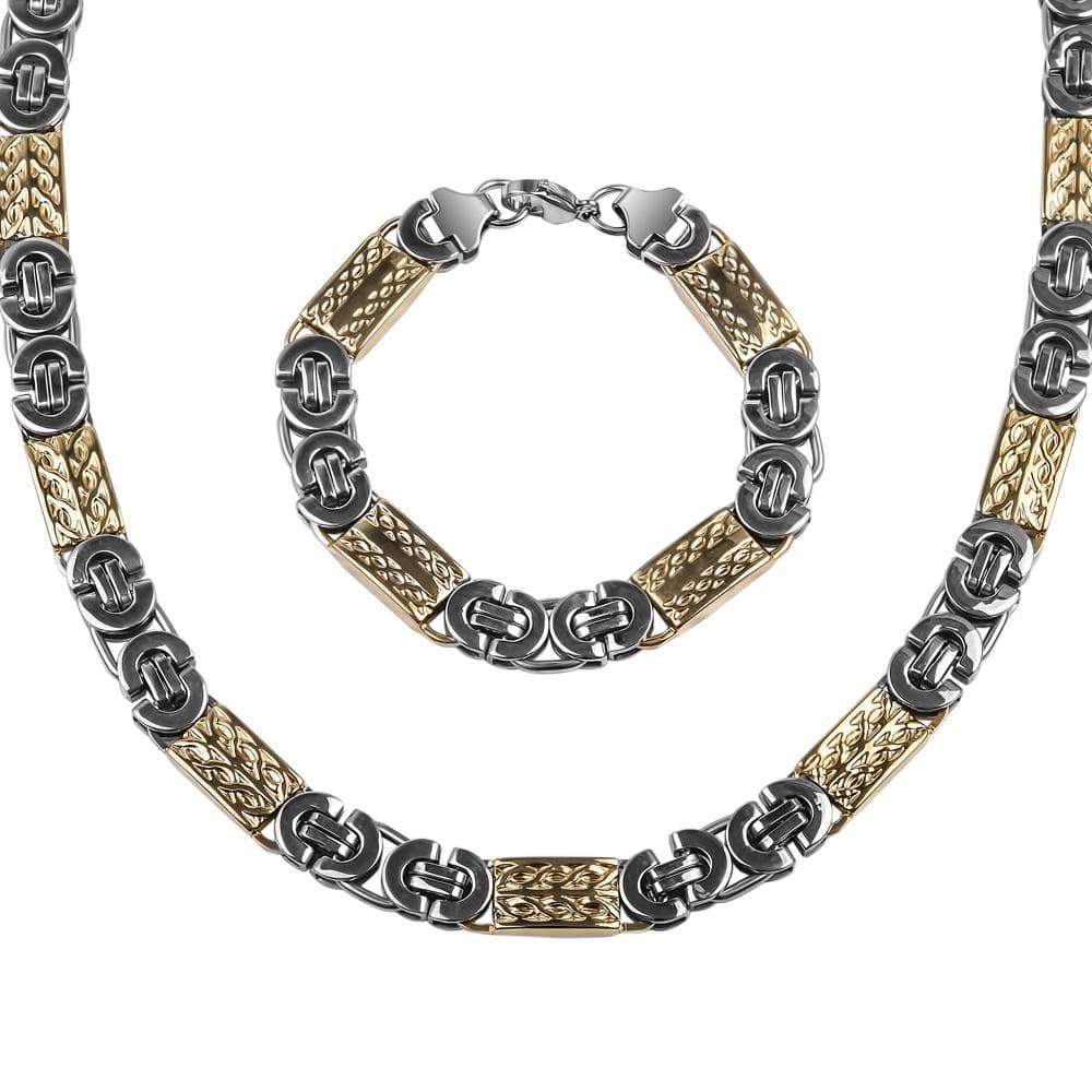 This stylish collection is created from an array of different shaped links, each one is expertly cast from premium grade 316L solid Stainless Steel before being polished to a high shine. The textured links are then treated to a luxurious plating of 18k Yellow Gold. The perfect treat for any style conscious gentleman that appreciates the finer things in life. Each piece dispatchesin one of our magnificent presentation cases, perfect for gift giving.