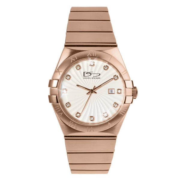 This sophisticated range of watches is understated yet makes its presence felt through a mixture of quality construction and classic design. We have of course used the finest 316L Stainless Steel for the case and unusual bracelet design. 12 shimmering Diamondeau®, the supreme diamond alterative guide you to the time and a useful date window has been added to keep you on track.