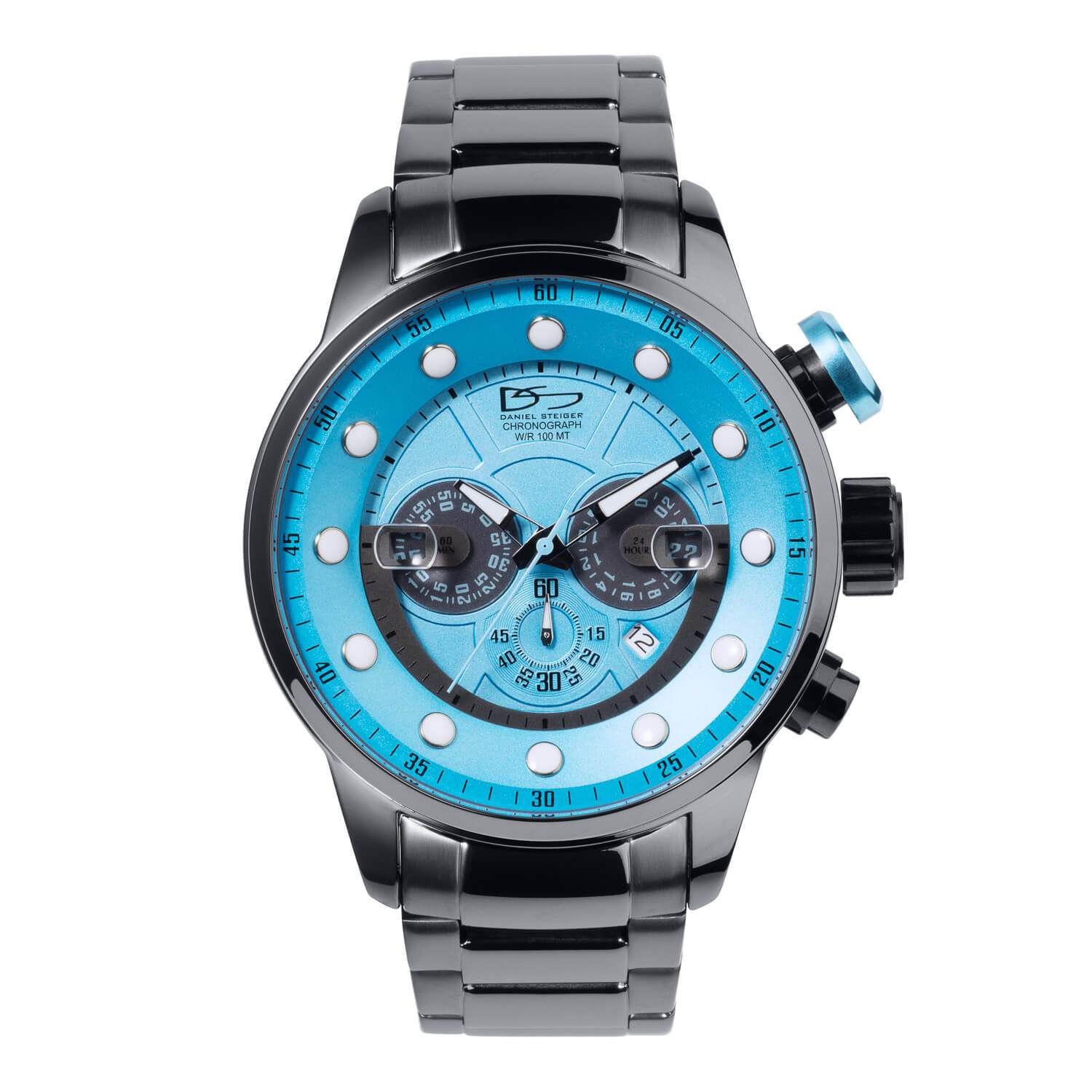 Our Maverick watch is packed with features including a chronograph movement, colorful subdials and a sleek steel band, what more do you need? Colorful dials and pushers in racing red, baby blue and lime green are complemented with a sleek stainless steel band in black or gunmetal. We have managed to bring you the ultimate timepiece, rarely do you find such luxury and quality for this amazing price.