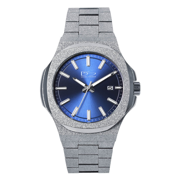 Our ever popular watch style has been brought to you in different colors. Turn heads with this statement timepiece. Engineered from premium stainless steel, choose between the case and strap finished in a luxurious golden stardust effect or frosted silver. This unique effect is created by intricately carving into the surface creating a frosted finish. A blue sunray dial with useful date window at 3 o’clock complements the strap and case finish and makes this an awesome standout watch.